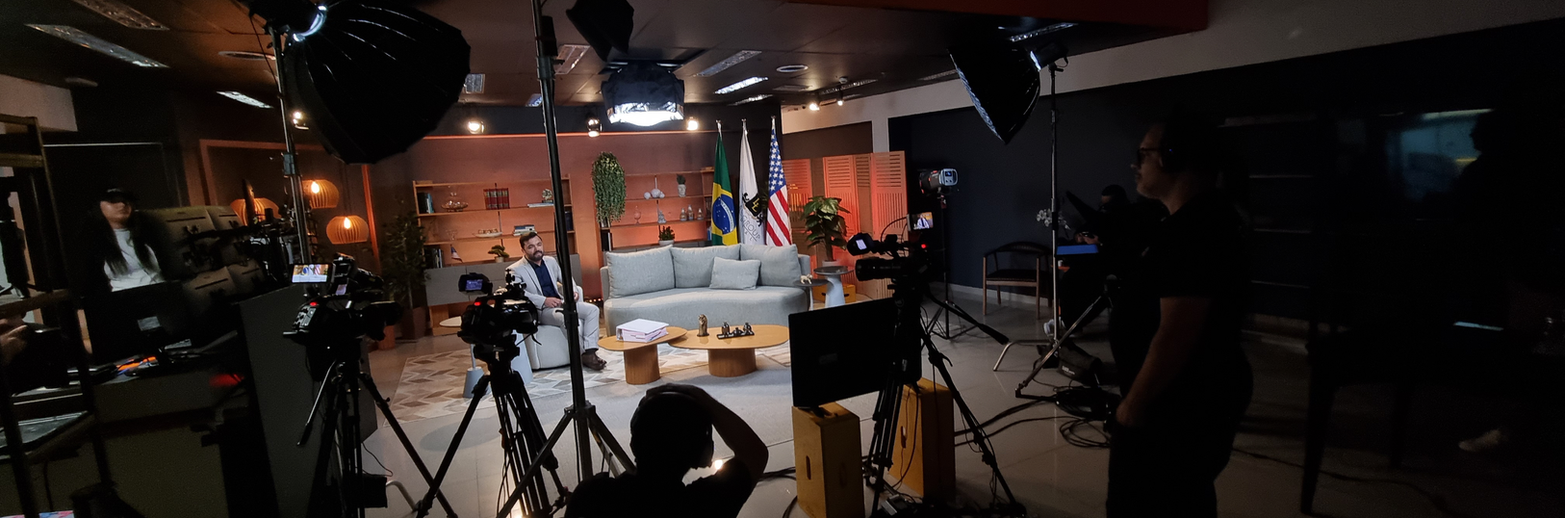 Estamos localizados na Barra da Tijuca, no Polo Cine e Vídeo, com acesso fácil, segurança e suporte técnico no local. Nossos estúdios contam com câmeras profissionais, teleprompter, iluminação, switcher, painel de LED, internet dedicada com redundância e uma equipe à disposição.